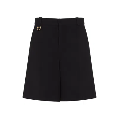 Chloe Black Virgin Wool Shorts. Crafted from black virgin wool, belt loops with metal D ring on the front, concealed hook and zip fastening, side pockets, one welt pocket on the back, straight hem.