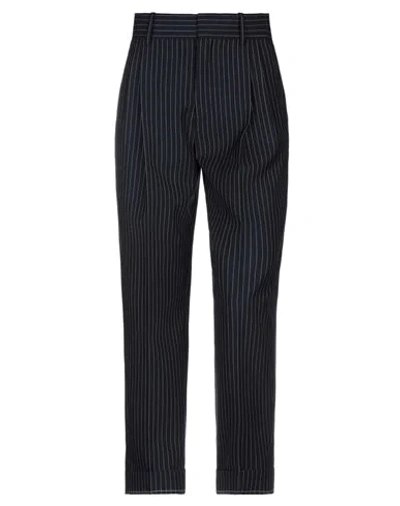 cool wool, folds, high waisted, regular fit, tapered leg, hook-and-bar, zip, multipockets, pinstriped, cuffed hems, large sized , Color: Midnight blue , Size: 6