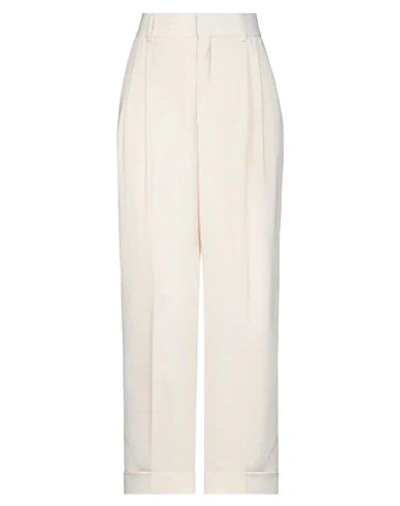 crepe, basic solid color, folds, high waisted, regular fit, tapered leg, button, zip, multipockets, cuffed hems, large sized , Color: Ivory , Size: 6