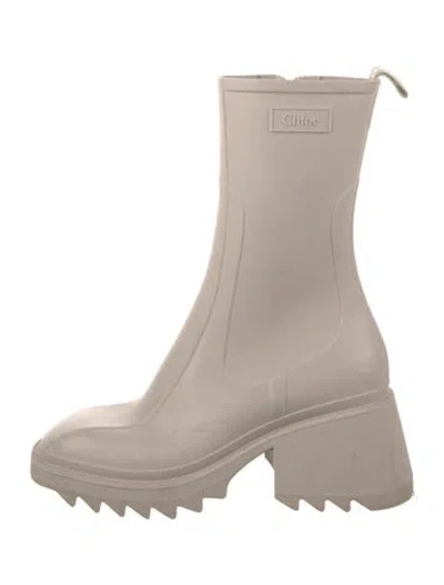 Chloé Rubber Ankle Rain Boots Neutrals Round-Toes Platform Exposed Zip Closure at Sides Includes Box & Dust Bag Fit: This style typically runs a half size small. | Chloé Rubber Rain Boots in Neutrals, Women's IT 39 | 9