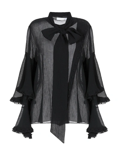 CHLOÉ Shirts. crepe, ruffles, ruffles, basic solid color, button closing, long sleeves, bow collar, no pockets, large sized, front closure. 65% Cotton, 35% Silk
