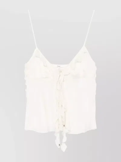 CHLOÉ Silk Ruffle Sleeveless Top In White
