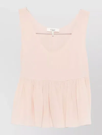 CHLOÉ Silk Top Sleeveless V Neckline Pleated