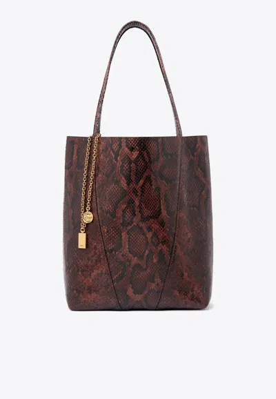 CHLOÉ Spin Python-print Leather Tote Bag In Brown