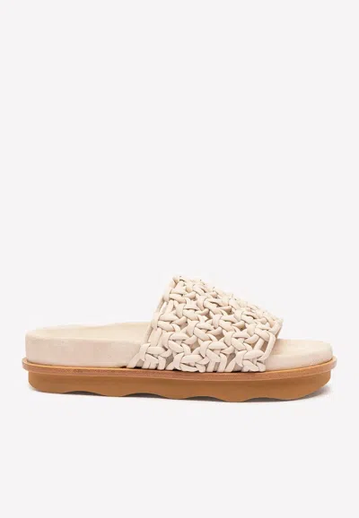 CHLOÉ Wavy Braided Leather Flat Mules In Eggshell