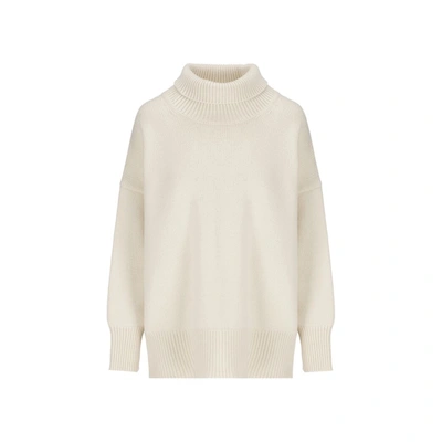 Cashmere roll-neck sweater off-white knitted construction ribbed trim roll neck shoulder long sleeves and straight hem