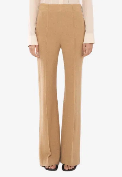 CHLOÉ Wide-leg Wool Cashmere Pants In Brown