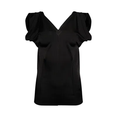 Chloe by Natacha Ramsay-Levi Crafted with impeccable design and quality material, this top offers versatility and style. Perfect for any occasion, the Chloe Top will elevate your look with its flattering fit and timeless design. Composition: 100% Ramie Ruffled detailing V-neck Short sleeves Peplum hem Spring Summer 18 SKU: MH20590 001 | Chloe Women's Top, Short Sleeves, Black, Size: XS