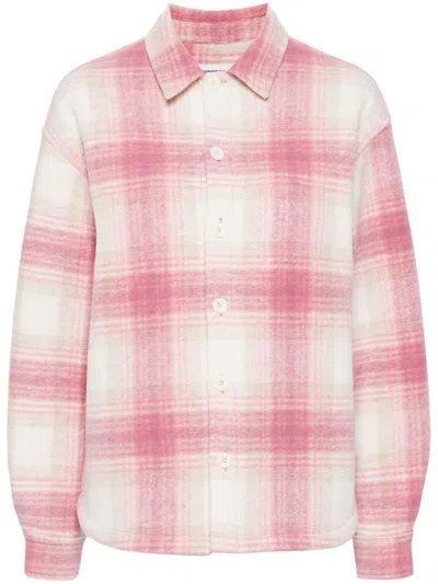 white/pink button fastening check pattern classic collar buttoned cuffs long sleeves curved hem