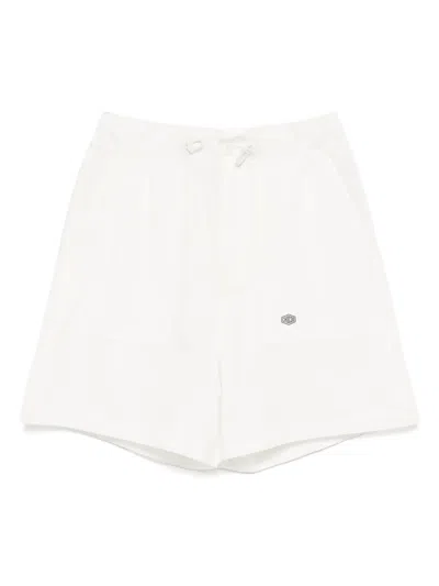 ivory white front button and zip fastening elasticated drawstring waistband two side patch pockets two rear welt pockets