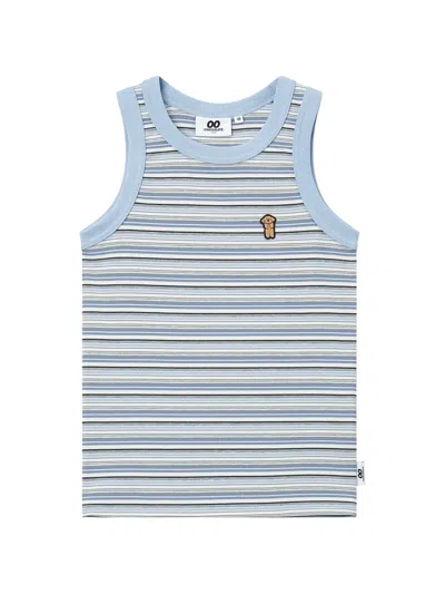 Blassblau gestreift runder Ausschnitt farblich abgestimmte Ziernähte Applikationen ärmellos