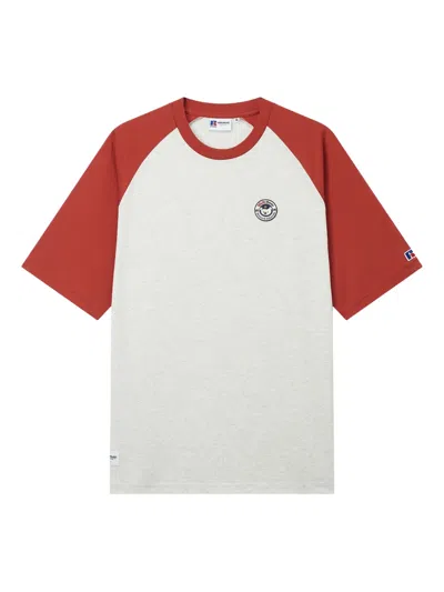 light grey crew neck two-tone design embroidered logo at the sleeve straight hem