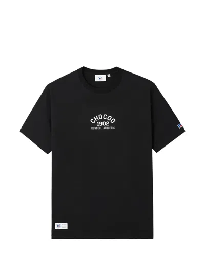 black cotton logo print to the front crew neck short sleeves logo patch to the sleeve logo patch to the hem straight hem