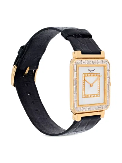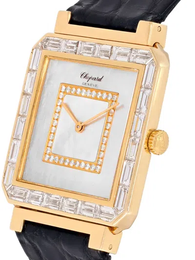 pre-owned 29mm mother-of-pearl dial round face baton hands pavé-setting round-cut diamonds diamond-encrusted bezel 18kt yellow gold leather strap buckle fastening quartz movement Hallmarked in the United Kingdom at the London Assay Office. Normal everyday use and external agents may reduce the lustre of gemstones and gold surfaces. To maintain, use specific, non-abrasive products specially meant for cleaning jewellery. Original box included. This item comes with a standard one-year warranty from the boutique. Condition: EXCELLENT. This previously owned item is in near-perfect condition with no signs of damage or use. Unfortunately, we are unable to ship this item outside of the US.