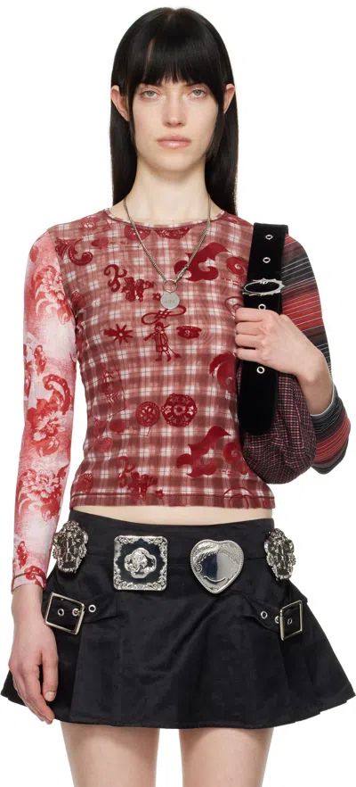 CHOPOVA LOWENA Red Trigger Flocked Mesh Long Sleeve In Multi