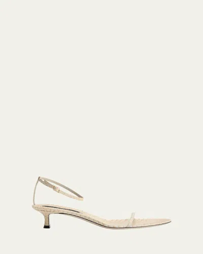 CHRISTEN Python Ankle-strap Sandals In Neutral