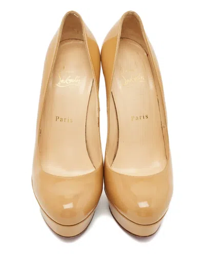 Pre-owned Bianca Platform Leather Heel In Neutral