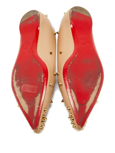 beige leather spike stud detailing pointed toe branded insole signature red sole Condition: GOOD. This previously owned and used item is in good condition with minimal signs of use. This may include fading of material or plating and scratches.