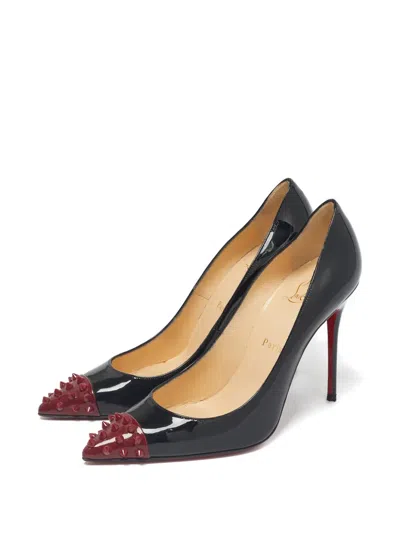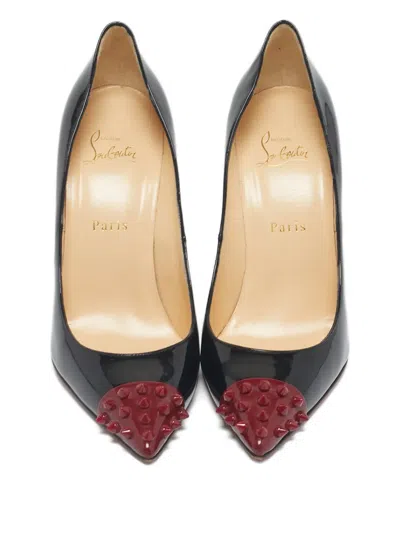 black cap toe spike embellishment red sole Condition: GOOD. This previously owned and used item is in good condition with minimal signs of use. This may include fading of material or plating and scratches.
