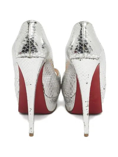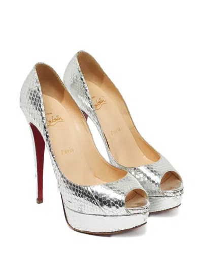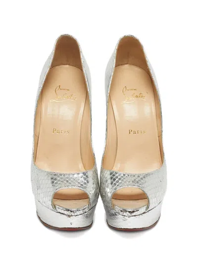 Pre-owned Python-embossed Leather Peep Toe Pumps In Silver