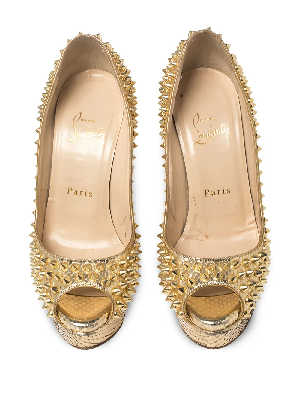 gold python leather platform sole stiletto heel studded embellishment This item comes from our partner boutiques in a variety of countries and cannot be shipped outside its region (either US, UAE, or the EU & UK). Please check the country of origin in the Shipping & Free Returns tab or your Shopping Bag to make sure it can be delivered to your location.
