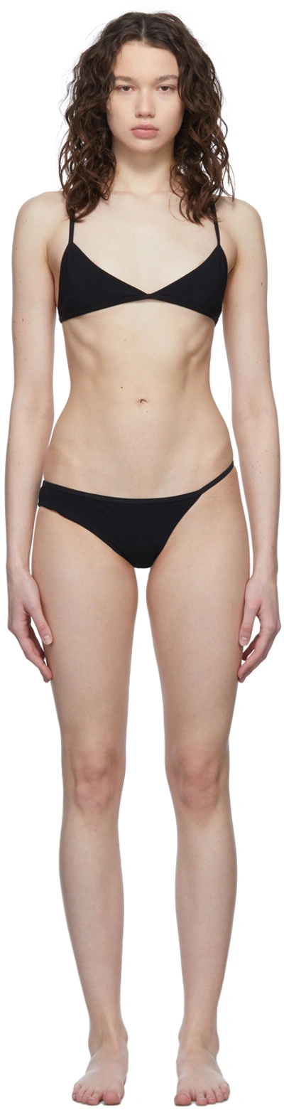 Stretch nylon jersey bikini top in black. · Layered construction · Fixed shoulder straps · Fully lined Stretch nylon jersey bikini bottoms in black. · High-rise · High-cut · Fully lined Supplier color: Black