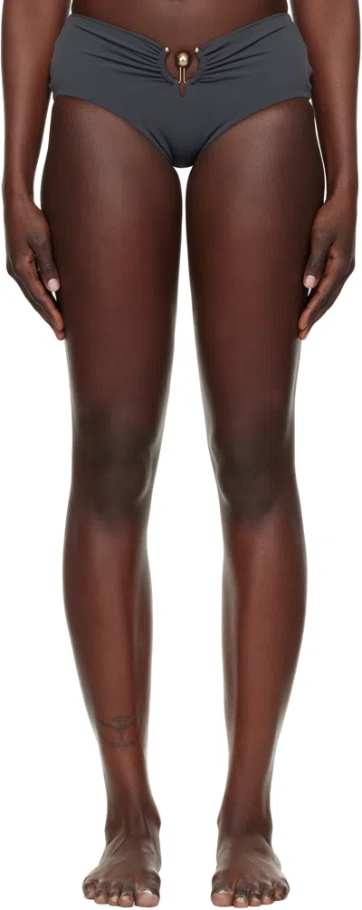 CHRISTOPHER ESBER Gray Orbit Ruched Bikini Bottom In Charcoal