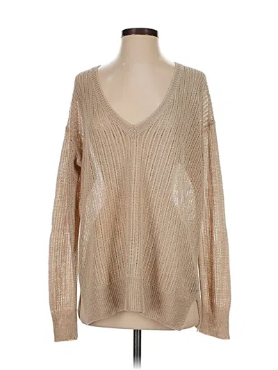 Christopher Fischer Pullover Sweater, Size: Small. Item Details: Tan, Metallic Pattern, Plunge Neckline, Long Sleeve, Women's Tops, 100% Linen