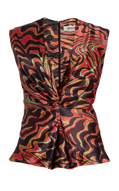 CHRISTOPHER JOHN ROGERS Plunged Satin Top In Multi