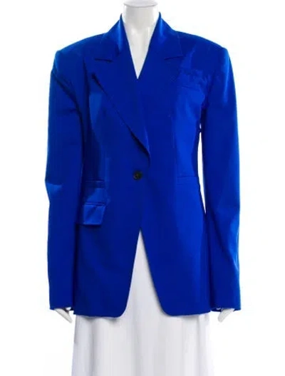 Christopher John Rogers Wool Blazer Blue Pointed Collar Flap Pockets & Button Closure Fit: Jackets by Christopher John Rogers typically fit true to size. | Christopher John Rogers Wool Blazer in Blue, Women's US 0 | XS