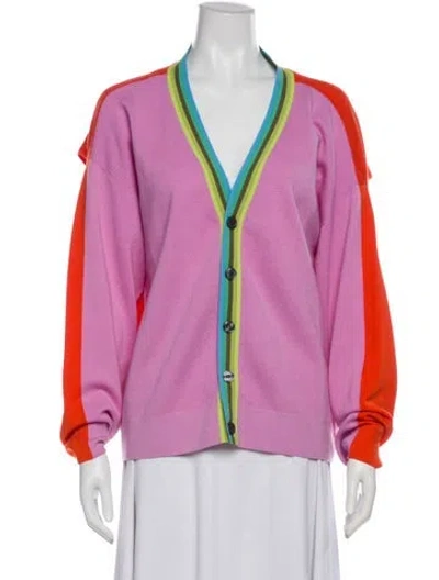 Christopher John Rogers Wool Cardigan Pink Colorblock Pattern Long Sleeve with V-Neck Button Closure at Front Fit: Knitwear by Christopher John Rogers typically fit true to size. | Christopher John Rogers Wool Colorblock Pattern Sweater in Pink, Women's M