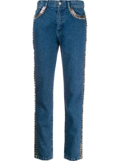 Blue cotton embellished side-stripe jeans from Christopher Kane.