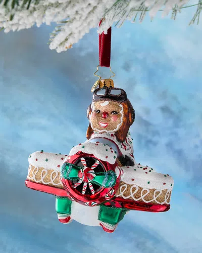 Forget about regular sleigh rides; the gingerbread aviator is here to navigate the sweet skies with style. The only turbulence you'll encounter is a sugar rush! Handmade ornament made of glass Approx. 4.5"T x 4.8"L x 4.5"W Wipe clean Made in Poland