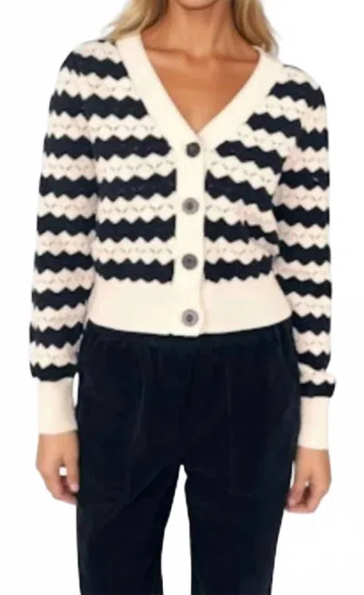 Jamien Pointelle Cardigan Sweater In Black/white Stripe In Multi