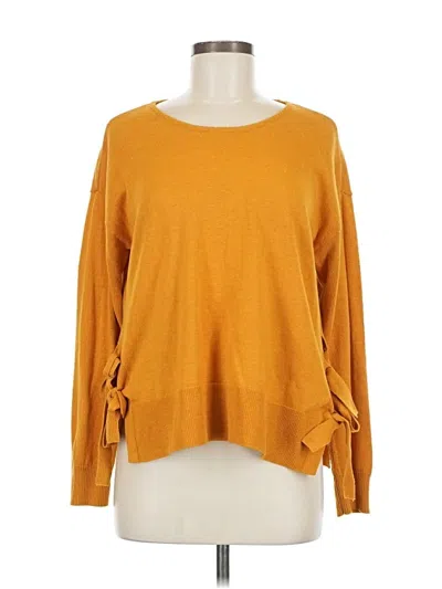Ci Sono Pullover Sweater, Size: Medium. Item Details: Orange, Tie Neck, Long Sleeve, Ruched, Women's Tops, Cotton/Polyester