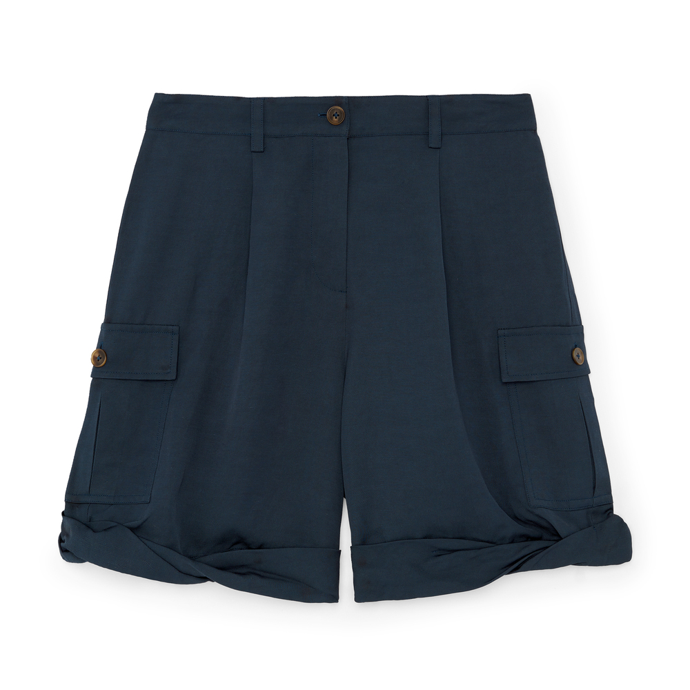 Ciao Lucia Ali Short in Ink, Medium: While they’re nipped in at the waist, everything else about these shorts is refreshingly boyish. They have an intentionally relaxed, almost baggy fit. Functional cargo pockets finished with faux-horn buttons. And rolled hems that give them an effortlessly styled look. Pair them with something polished or girlie—like the Anabela Top —for contrast.50% viscose, 31% rayon, 19% linen.