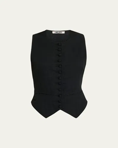Ciao Lucia "Argento" linenblend vest Crew neckline Sleeveless Welt pockets Adjustable back strap Tailored fit Cutaway hem Buttonfront Cotton/linen Dry clean Imported