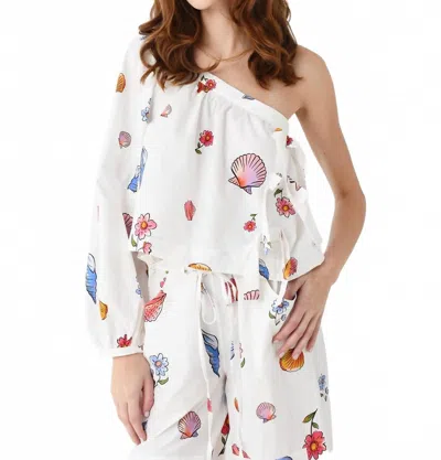 Lea One Shoulder Top In Shell Print Cotton In White