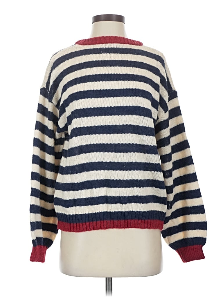 Cider Pullover Sweater, Size: Small. Item Details: Blue, Stripes Pattern, Mock Neckline, Long Sleeve, Women's Tops, Polyamide/Polyester/Acrylic
