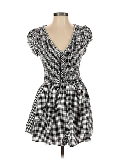 Cider Romper, Size: Small. Item Details: Black, Houndstooth Pattern, Plunge Neckline, Boot Leg, Short Sleeve, Women's Dresses, Polyester/Cotton/Viscose