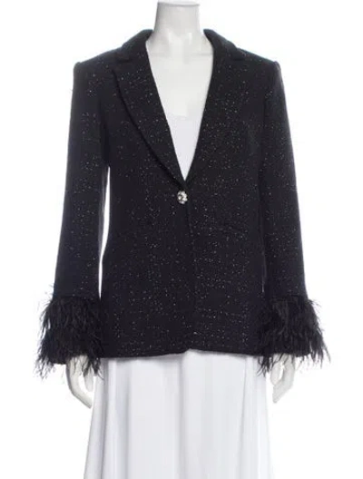 Cinq à Sept Down Jacket Blue Tweed Pattern Crystal Embellishments & Pointed Collar Button Closure Fit: Jackets by Cinq à Sept typically fit true to size. | Cinq à Sept Tweed Pattern Down Jacket in Blue, Women's US 4 | S
