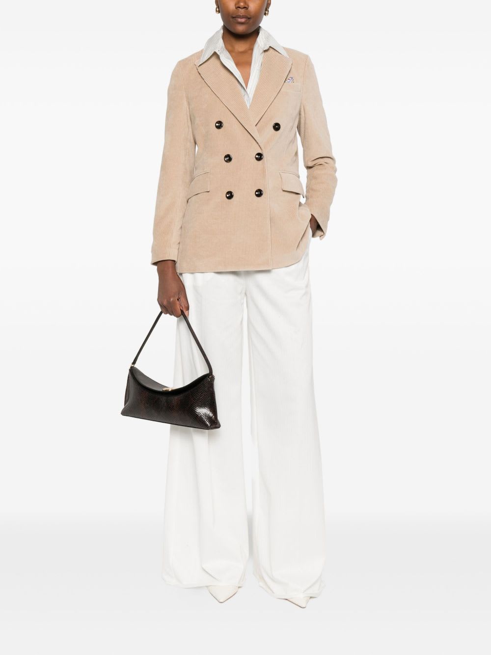 light beige corduroy texture double-breasted closure notched lapels side flap pockets. Colour. : Light and natural. Country Of Manufacture. : Romania. MPN. : FD36361128. .