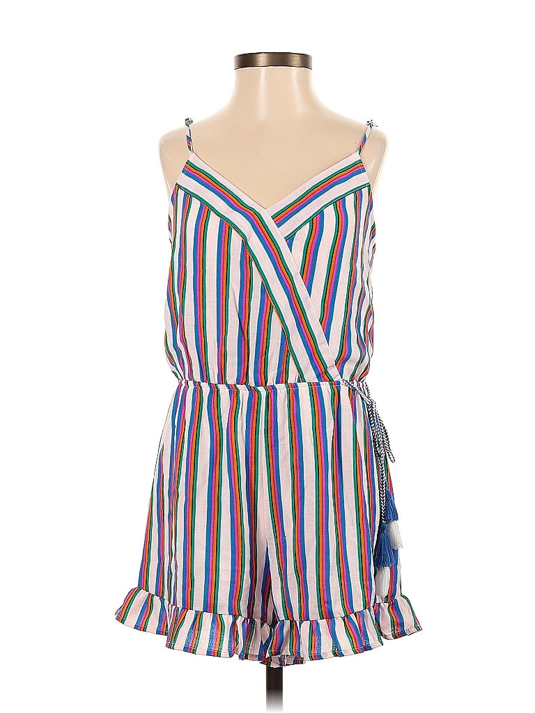 City Triangles Romper, Size: X-Small. Item Details: White, Stripes Pattern, Scoop Neck, Flared Leg, Sleeveless, Junior Dresses, 100% Polyester