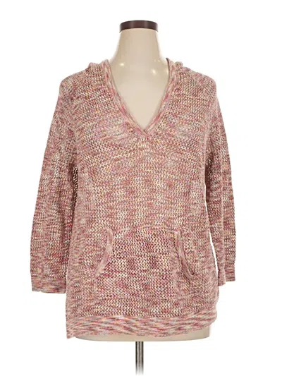 Cj Banks Pullover Sweater, Size: 1X. Item Details: Pink, Tweed Pattern, Plunge Neckline, 3/4 Sleeve, Ruched, Women's Tops, 100% Cotton