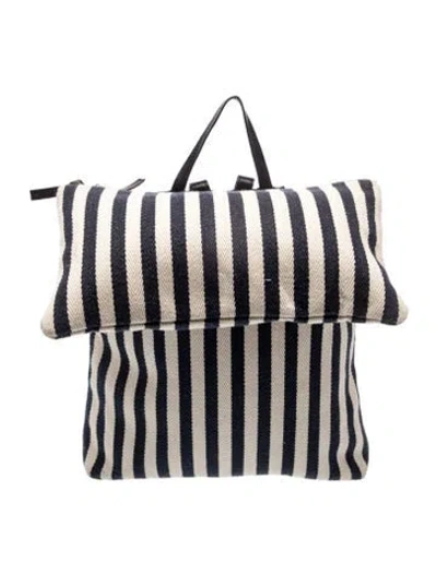 Clare V. Backpack Blue Canvas Striped Gold-Tone Hardware Canvas Lining Zip Closure at Top Includes Dust Bag | Clare V. Canvas Backpack in Blue