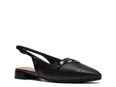 Clarks Natalyn Sling - Women's Flat Shoes : Black Raffia : A chic slingback shoe with an elegant pointed toe, Clarks Natalyn Sling instantly adds polish to any look. It's crafted with Clarks Collection signature foam footbed to ground every step in total comfort - whether heading into the office or dressing up on the weekend. It features a leather upper, polyester lining, and Ultimate Comfort foam footbed for all-day comfort and support. ; The Natalyn Sling is part of the Clarks Collection. ; Adjustable slingback strap offers a secure, custom fit. ; Decorative vamp strap with contrasting hardware. ; Pointed toes. ; Block heels. ; Grippy and flexible thermoplastic rubber outsole brings extra stability and traction. ; Imported. Measurements: ; Heel Height: 1 in ; Weight: 1 lb ; Product measurements were taken using size 7, width D - Wide. Please note that measurements may vary by size. | Clarks Natalyn Sling Women's Flat Shoes Black Raffia : 7.5 D - Wide, Leather