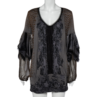 Pre-owned Grey Printed Jersey Overlay Sleeve Detailed Top L