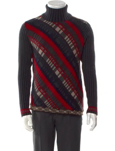 Class Roberto Cavalli Virgin Wool Pullover Vintage From the 2000's Collection Grey & Red Striped Long Sleeve with Turtleneck Fit: Sweaters by Class Roberto Cavalli typically fit true to size. | Class Roberto Cavalli Vintage 2000's Pullover in Grey/Red, Men's XL