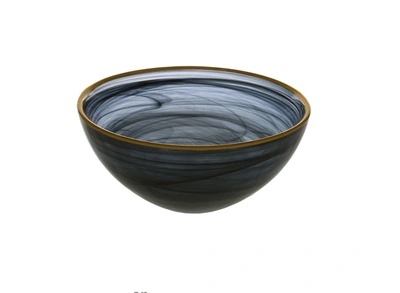 CLASSIC TOUCH DECOR Black Alabaster Bowl With Gold Rim - 6.25"d