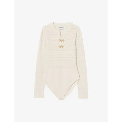 CLAUDIE PIERLOT Womens Knot Long-sleeve Stretch-knit Bodysuit Ecru In Animal Print